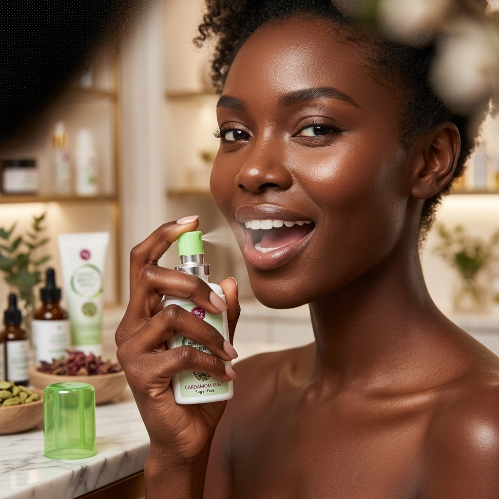 A compact breath spray with cardamom and mint that delivers instant freshness and long-lasting confidence anytime, anywhere.